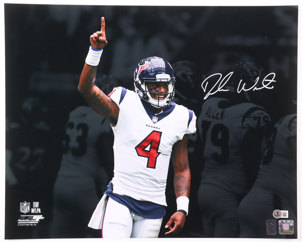 Photo measures 16" x 20" in size and has been hand-signed by Deshaun Watson (Houston Texans).