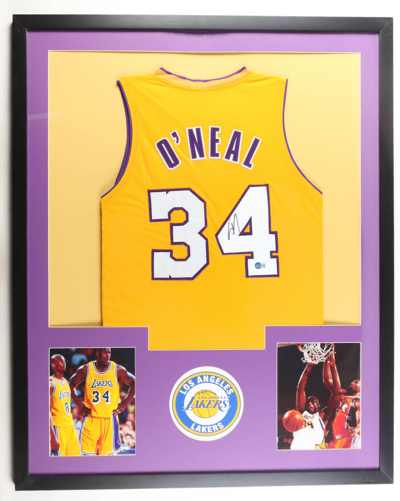 Custom frame measures approximately 34" x 42" in size and features a custom jersey that has been hand-signed by Shaquille O'Neal (Los Angeles Lakers, HOF).