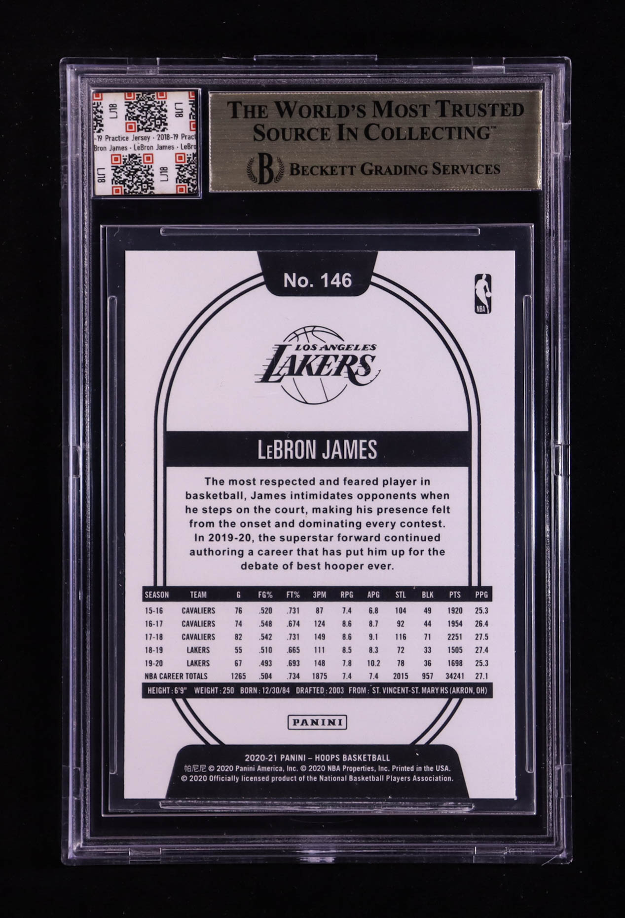 LeBron James 2020-21 Hoops #146 With Practice Jersey Swatch (BGS 9.5)