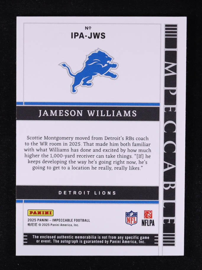 Jameson Williams 2025 Panini Impeccable Immense Patch Autographs #13 #57/99