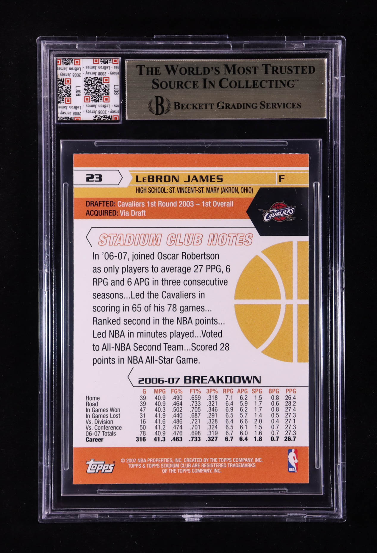 LeBron James 2007-08 Stadium Club #23 With Game-Used Jersey Swatch (BGS 9.5)