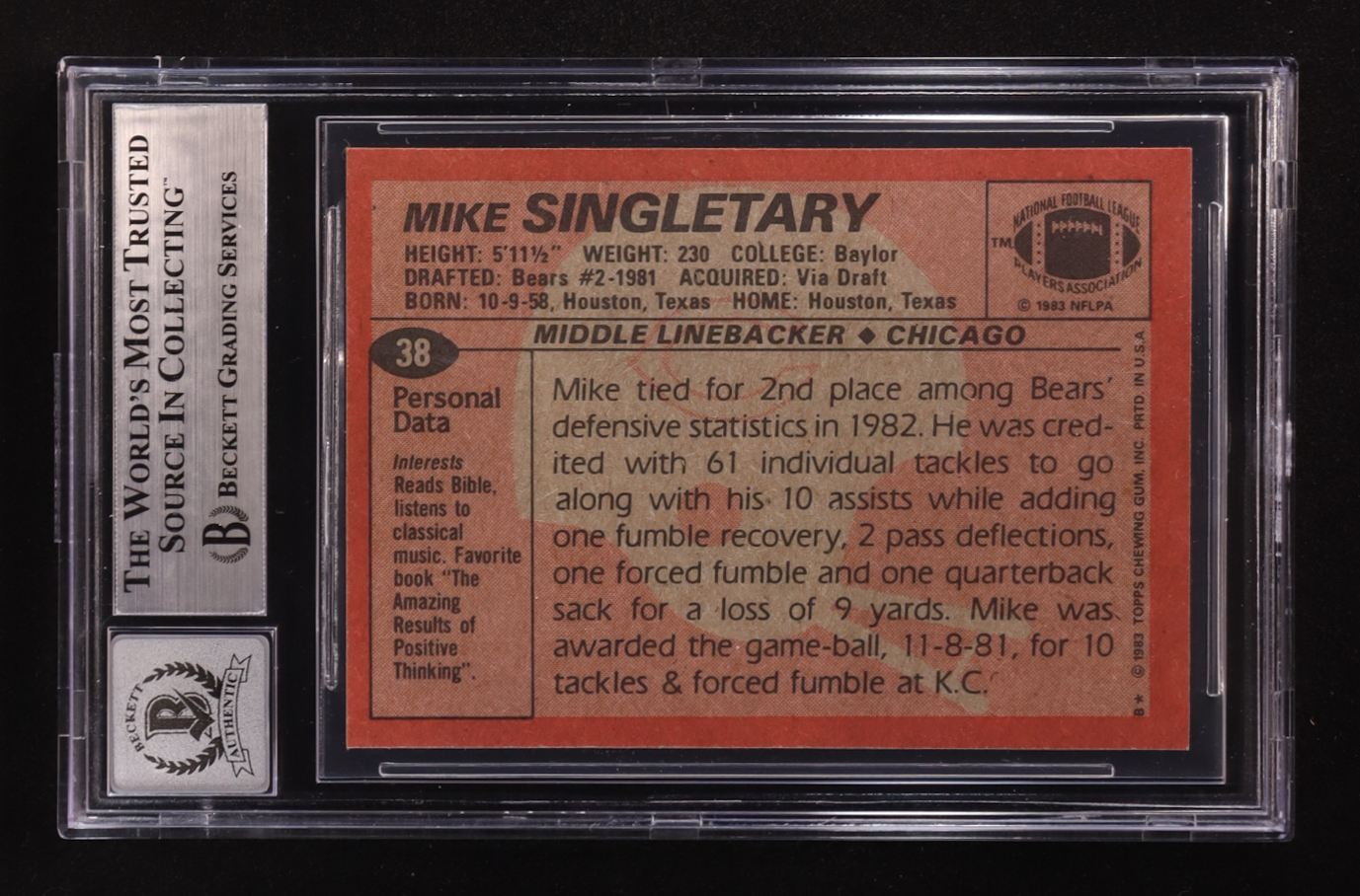 Mike Singletary Signed 1983 Topps #38 RC (BGS Authentic | Autograph Graded BGS 10)