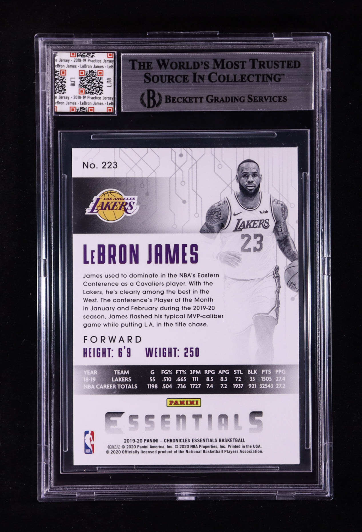 LeBron James 2019-20 Panini Chronicles #223 With Player Worn Swatch (BGS)