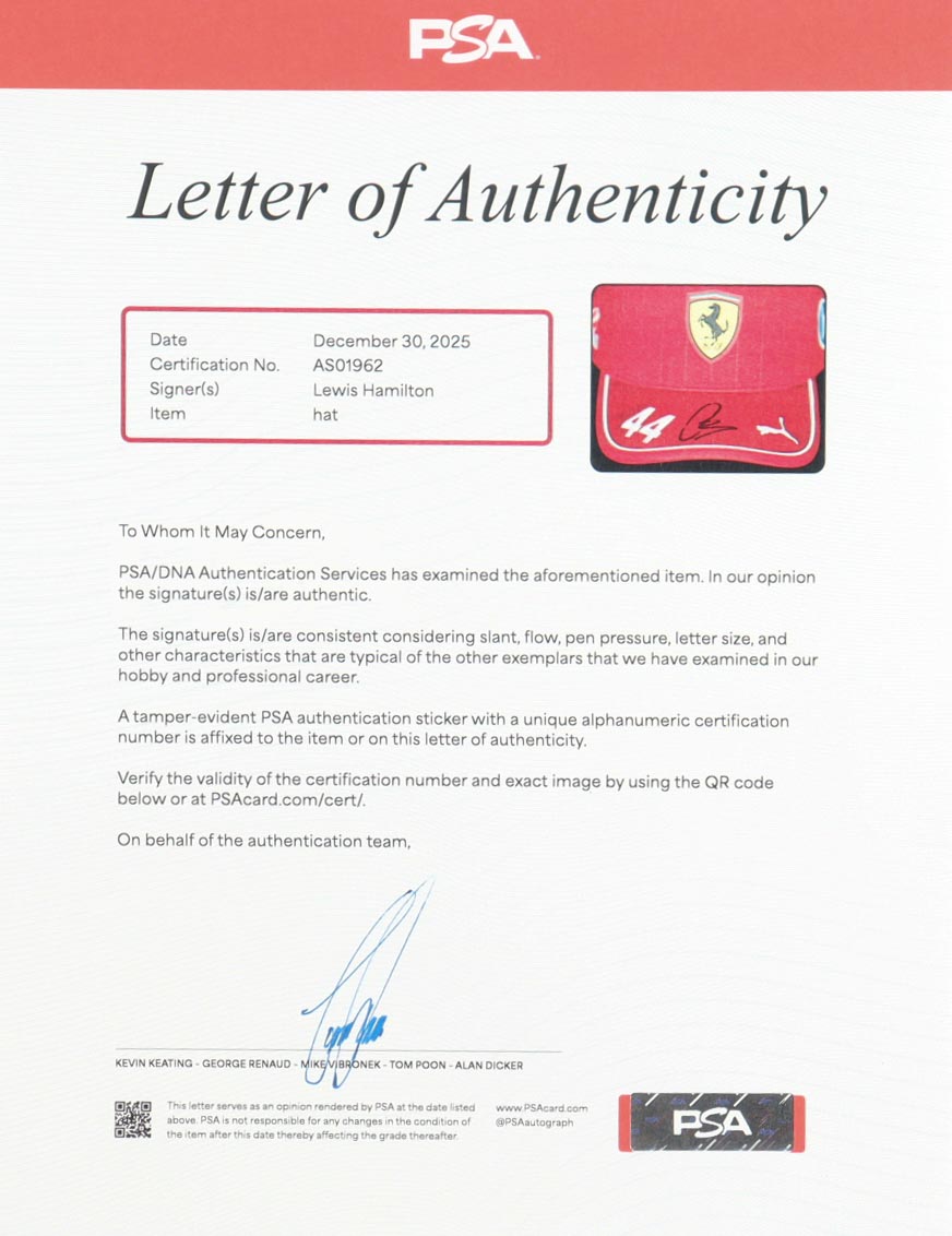 Lewis Hamilton Signed Ferrari Racing F1 Hat (PSA)