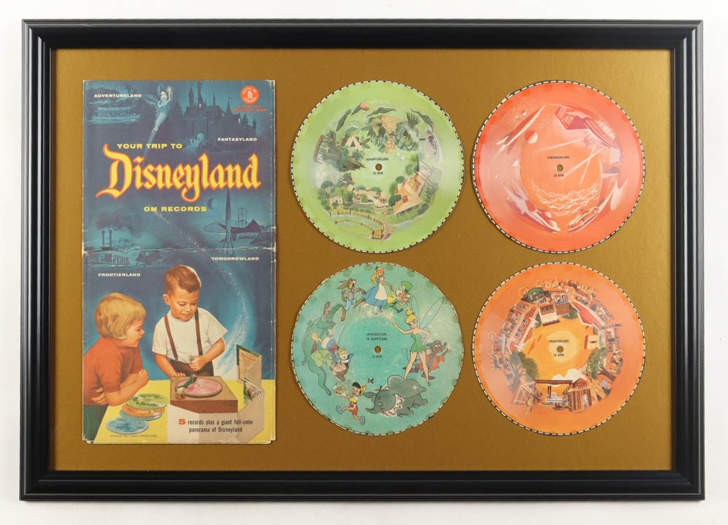 Disneyland 1955 "Four Lands" Custom Framed Record Set Display with Original Record Sleeve