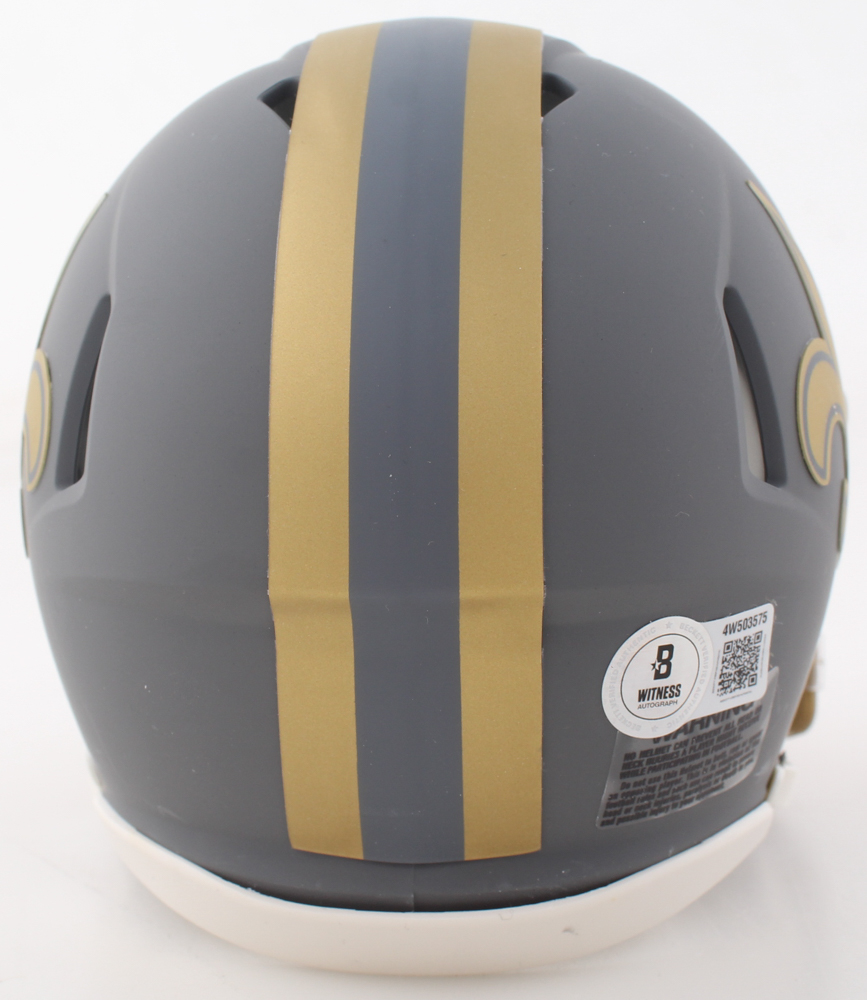 Riddell New Orleans Saints Slate Alternate Speed Mini Helmet. Hand-signed and inscribed by Drew Brees (HOF).