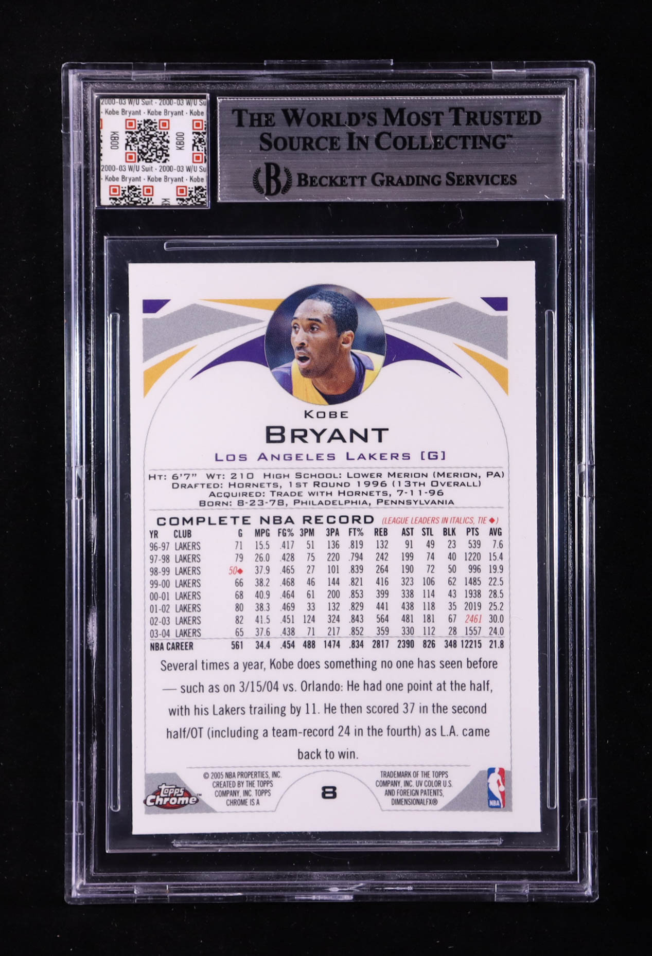 Kobe Bryant 2004-05 Topps Chrome #8 With Warm-Up Suit Swatch (BGS)
