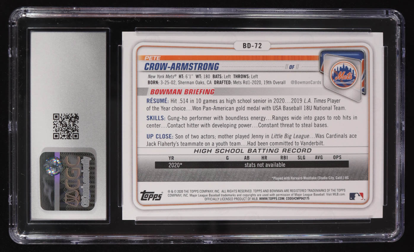 Pete Crow-Armstrong 2020 Bowman Draft #BD-72 RC (CGC 10)