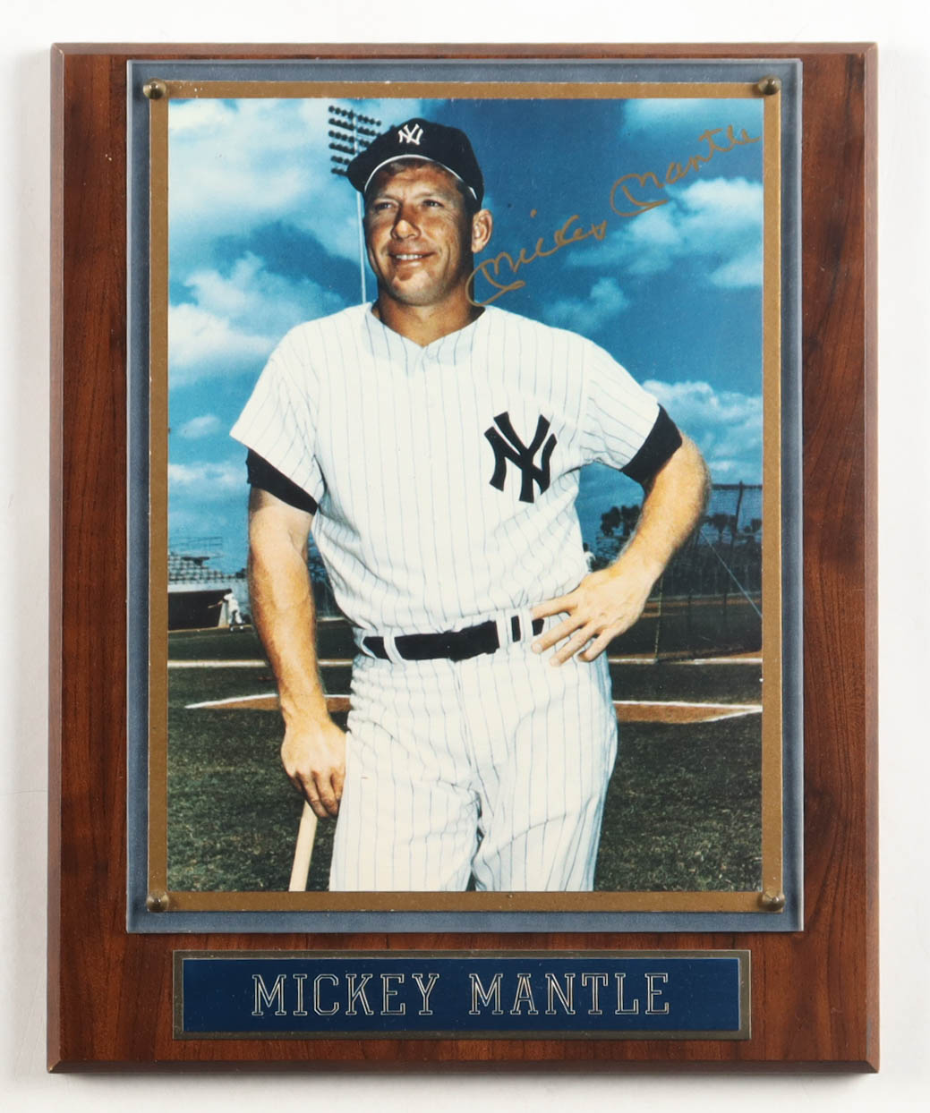 Custom plaque measures 10.5" x 13" in size. Photograph is hand-signed by Mickey Mantle (New York Yankees).