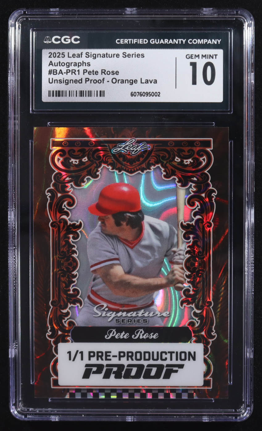 Pete Rose 2025 Leaf Signature Series Autographs Pre-Production Orange Lava Unsigned Proof #BA-PR1 #1/1 (CGC 10)