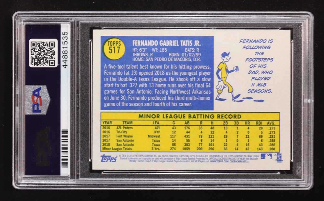 Fernando Tatis Jr. 2019 Topps Heritage #517 RC (PSA 10)