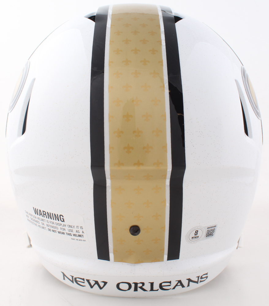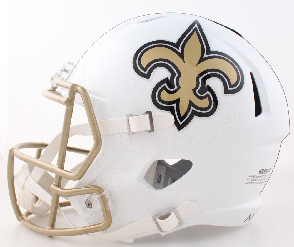 Riddell New Orleans Saints Full-Size Replica Speed Helmet. Hand-signed and inscribed by Drew Brees (HOF).