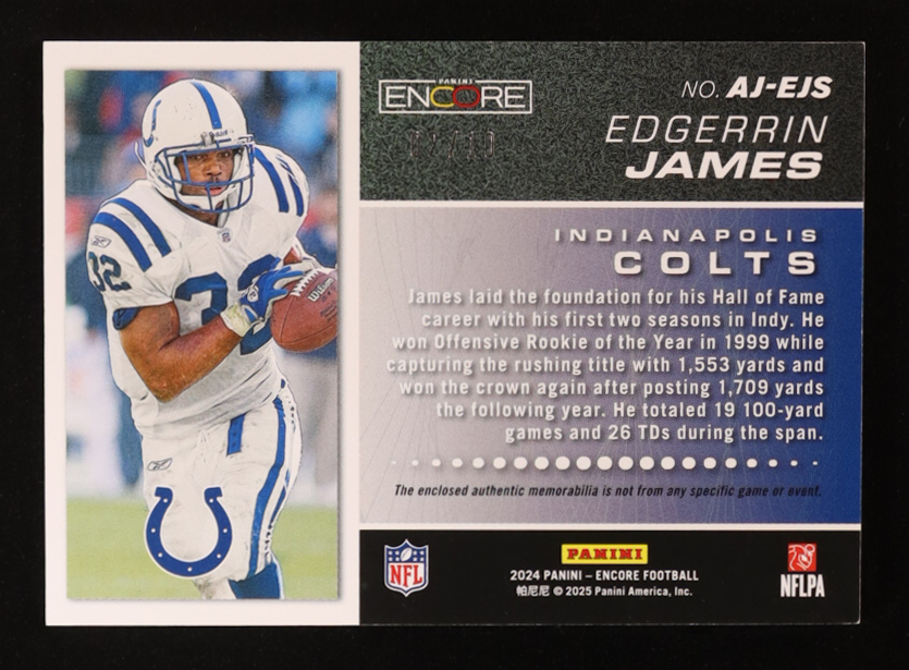 Edgerrin James 2024 Panini Encore Atomic Jersey Gold #9 #2/10