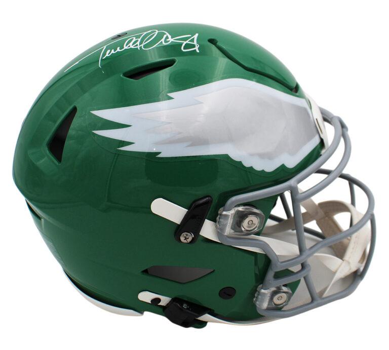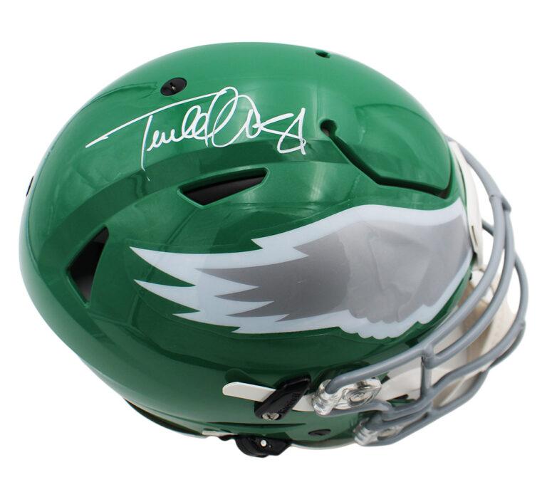Riddell Philadelphia Eagles full-size authentic on-field throwback alternate speedflex helmet has been hand-signed by Terrell Owens (HOF).