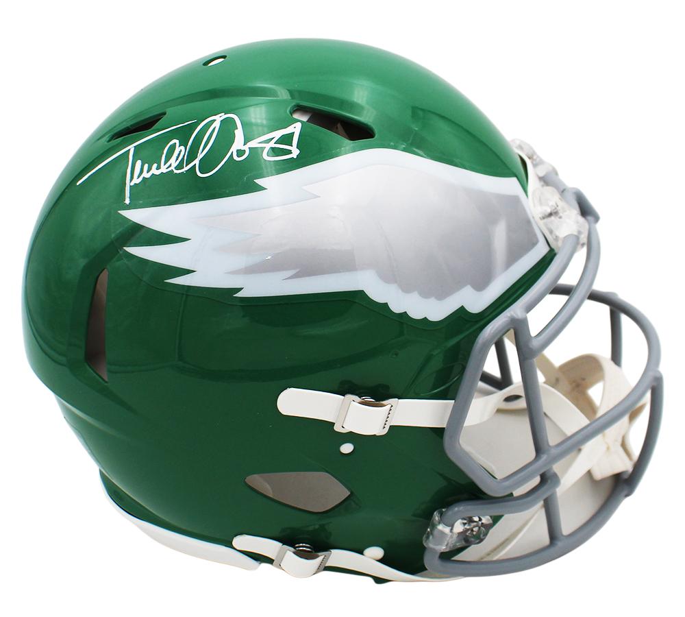 Riddell Philadelphia Eagles full-size authentic on-field throwback alternate speed helmet has been hand-signed by Terrell Owens (HOF).