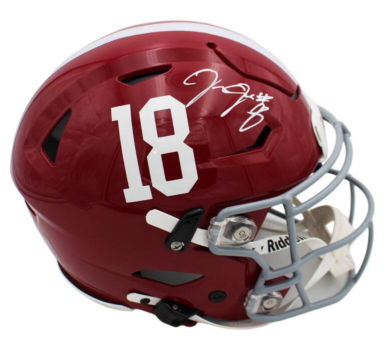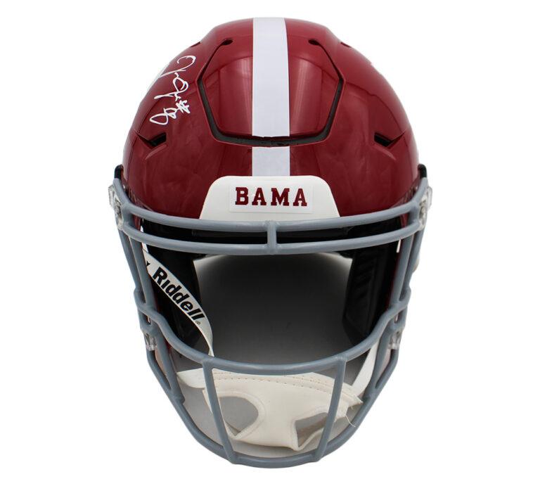 Riddell Alabama Crimson Tide full-size authentic on-field speedflex helmet. Hand-signed by Josh Jacobs.