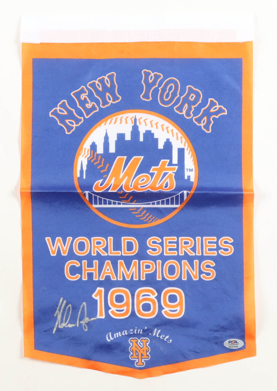 1969 New York Mets World Championship Canvas Banner measures approximately 11" x 7" in size. Hand-signed by Nolan Ryan (New York Mets, HOF). Please see photo for more details regarding the condition of the banner.