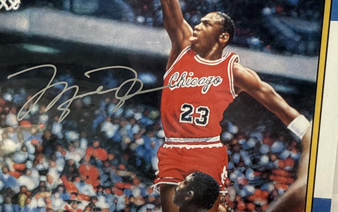 Almost universally regarded as the most important basketball card ever produced, Michael Jordan's 1986-87 Fleer rookie card was the focal point of a paradigm shift that occurred in the sports card industry in the late 1980's. With his popularity soaring on a global basis in the mid-to-late 1980's, Michael Jordan almost singlehandedly forced sports card collectors to shift their spending dollars away from baseball cards and into basketball cards. The tipping point had been reached and the entire sports trading card industry blossomed into a multi-sport category. Michael Jordan's 1986-87 Fleer rookie card simultaneously skyrocketed in value and historical prominence. Even after twenty plus years of time, MJ's Fleer RC remains a cherished icon and centerpiece for many trading collections. With the original image lost in time, Upper Deck commissioned famed sports artist Chuck Gillies to hand paint the 1986-87 Fleer art. His art was then used to produce this 'Fleer Blow Up'. The 'Fleer Blow Up' is almost identical to the original photo and has the matching stats from the original trading card on the back. If you ever wanted your Fleer rookie signed, this is your opportunity