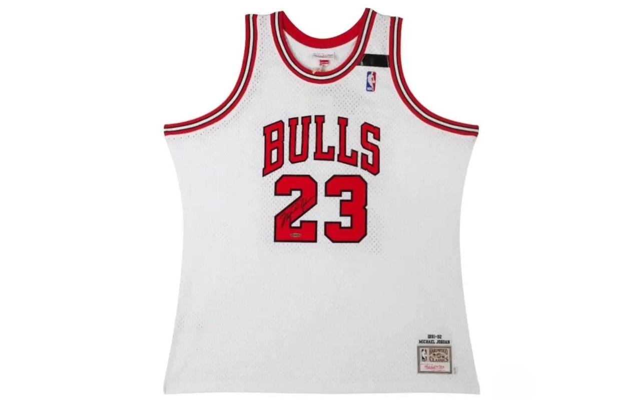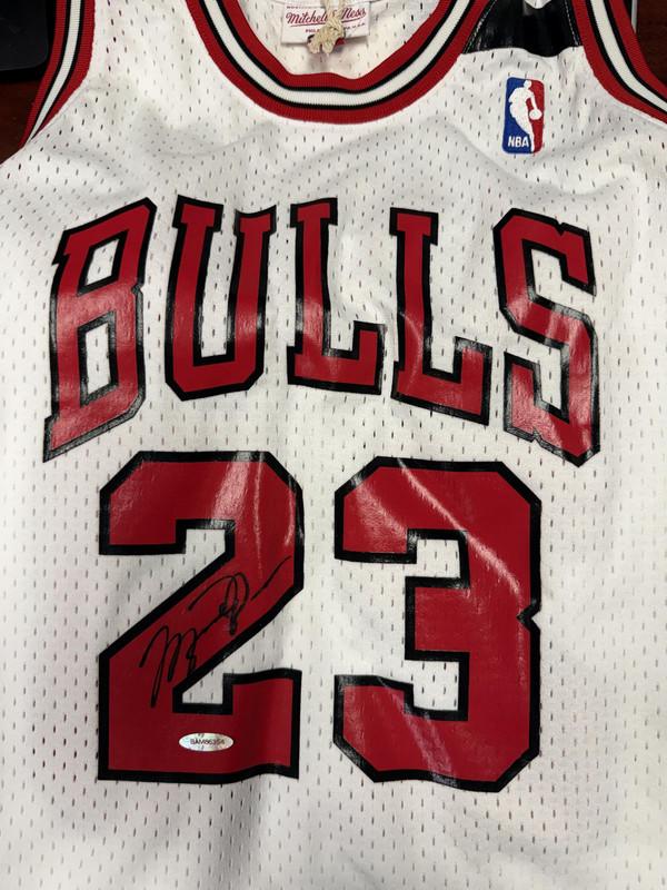 Mitchell & Ness jersey with everything sewn on, size XL. Hand-signed by Michael Jordan (Chicago Bulls, HOF).