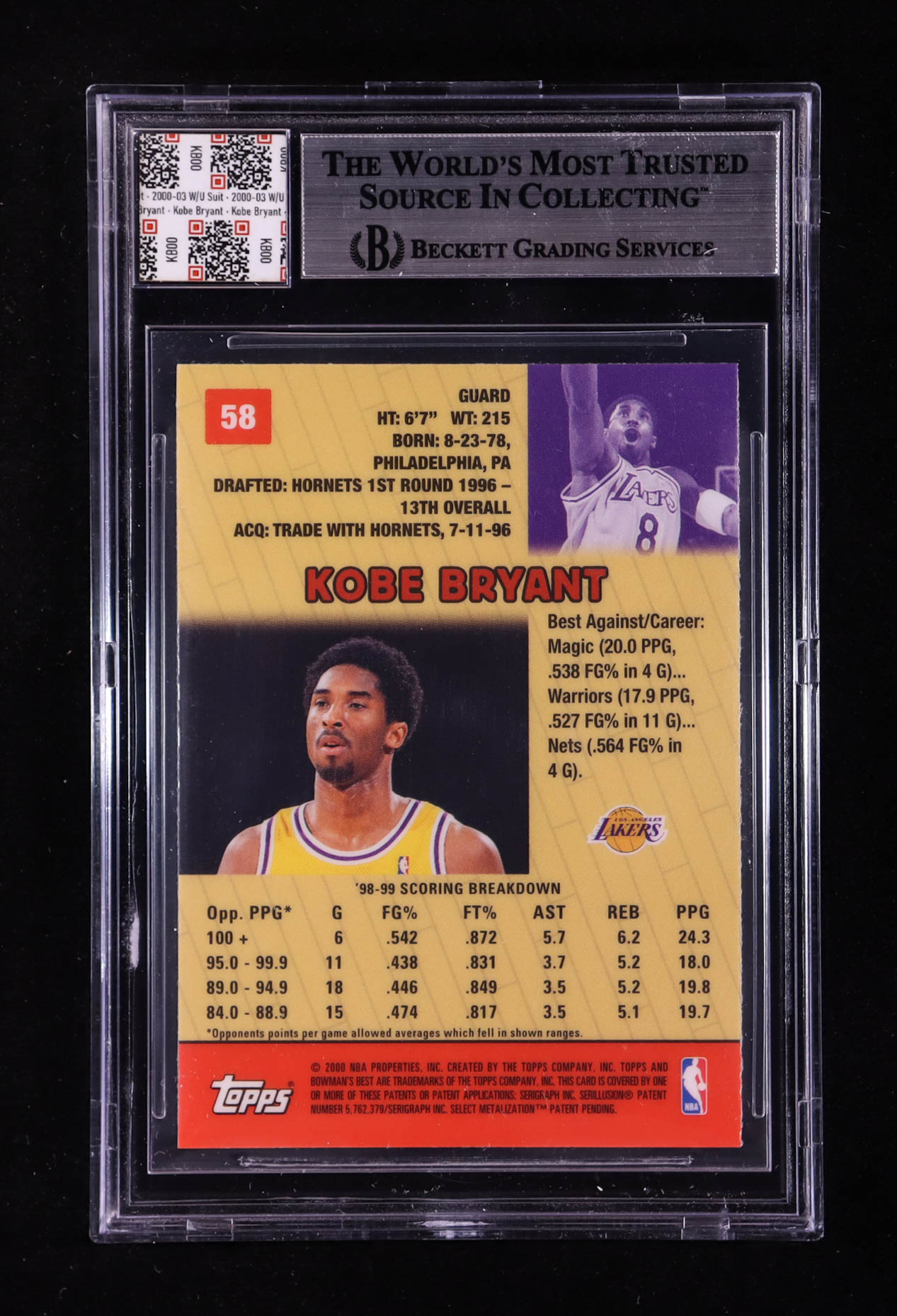 Kobe Bryant 1999-00 Bowman's Best #58 With Warm-Up Suit Swatch (BGS)