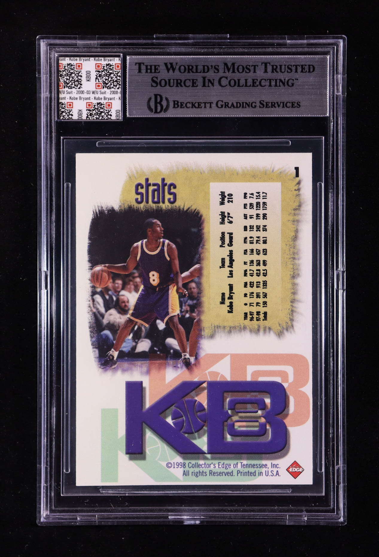 Kobe Bryant 1998 Collector's Edge Impulse KB8 Gold #1 With Warm-Up Suit Swatch (BGS)