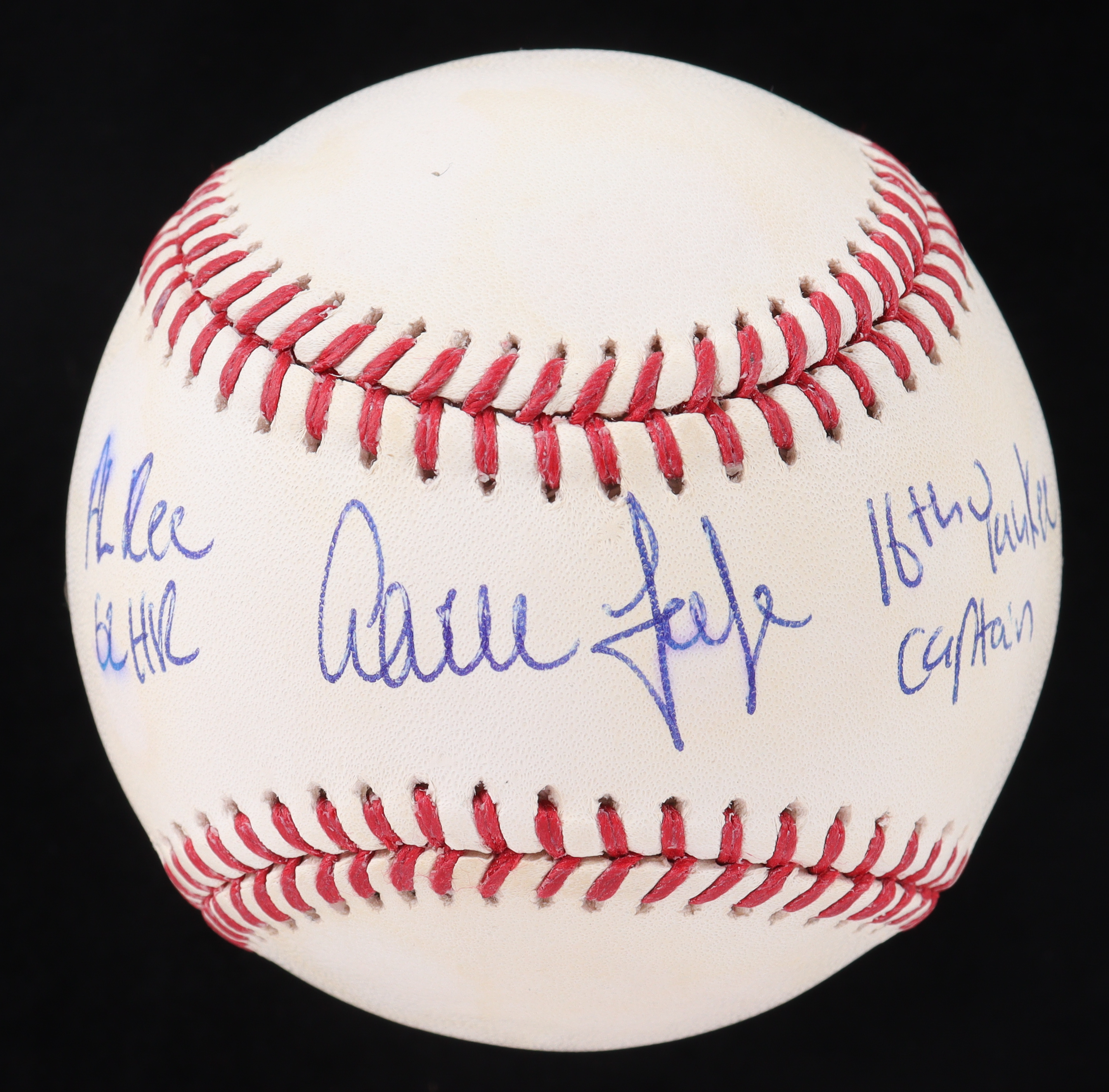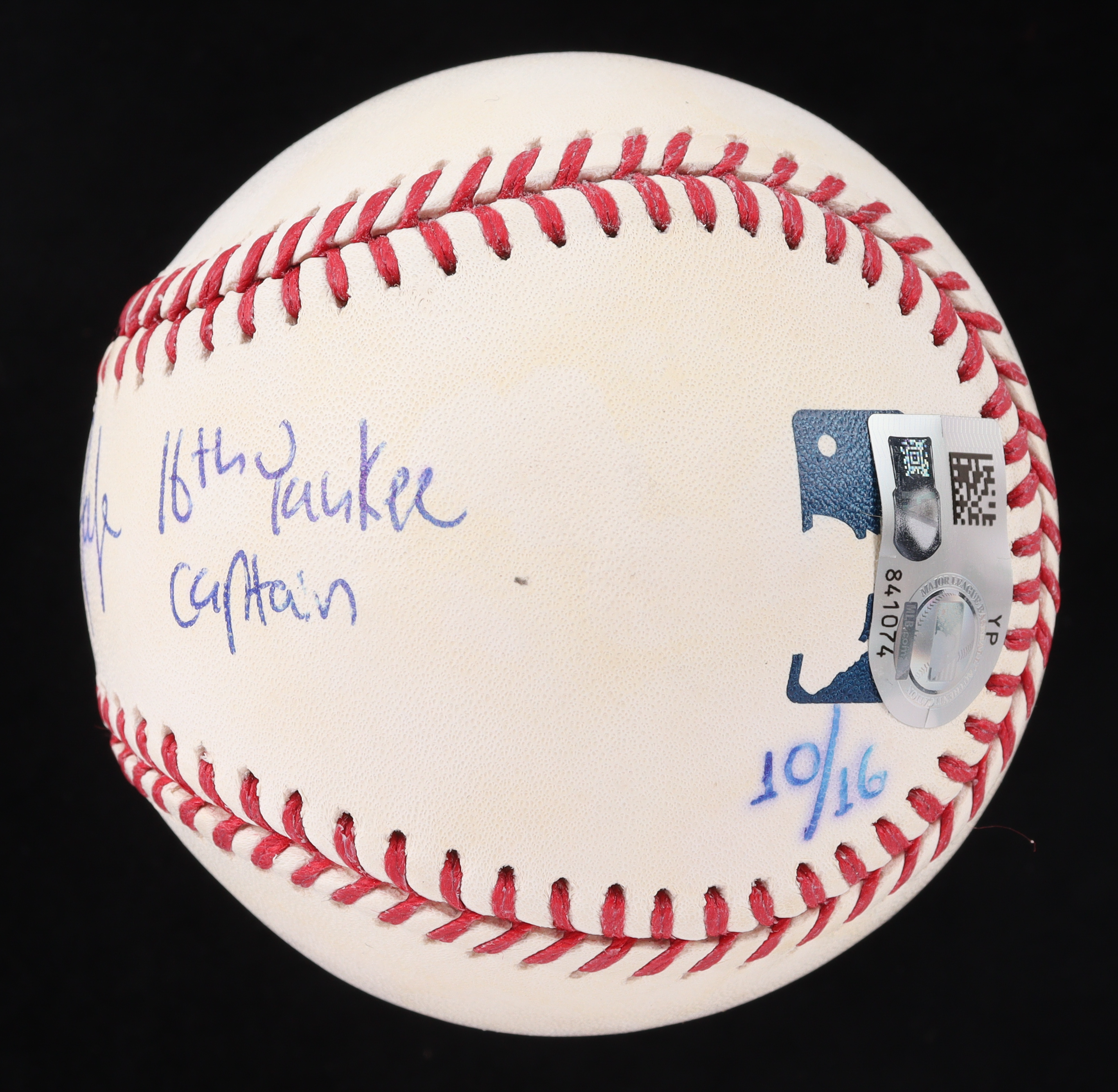 Rawlings Official Major League Baseball. Hand-signed and inscribed by Aaron Judge (New York Yankees). The baseball is limited edition and has been hand-numbered #10/16. Please note, the inscriptions have bled and there are stains throughout the baseball.