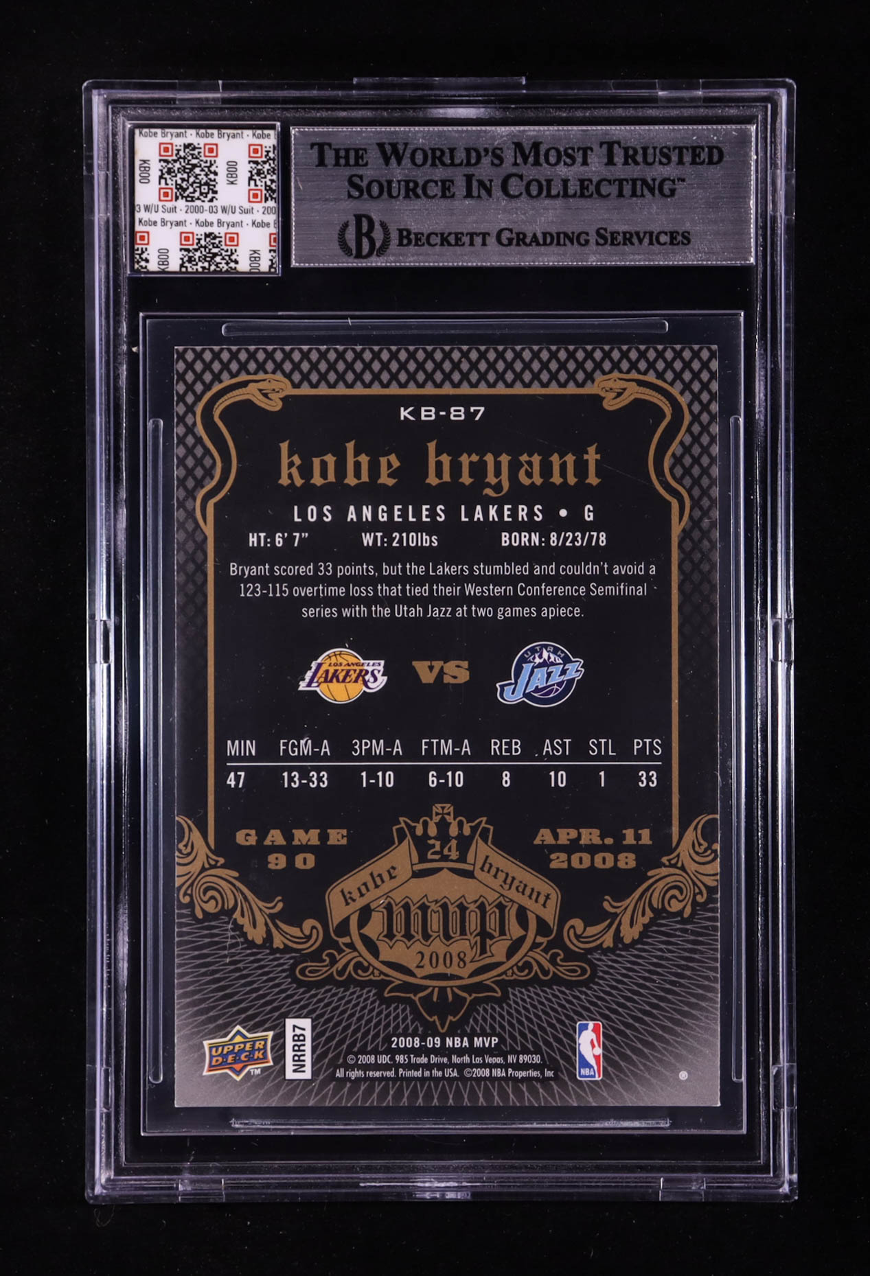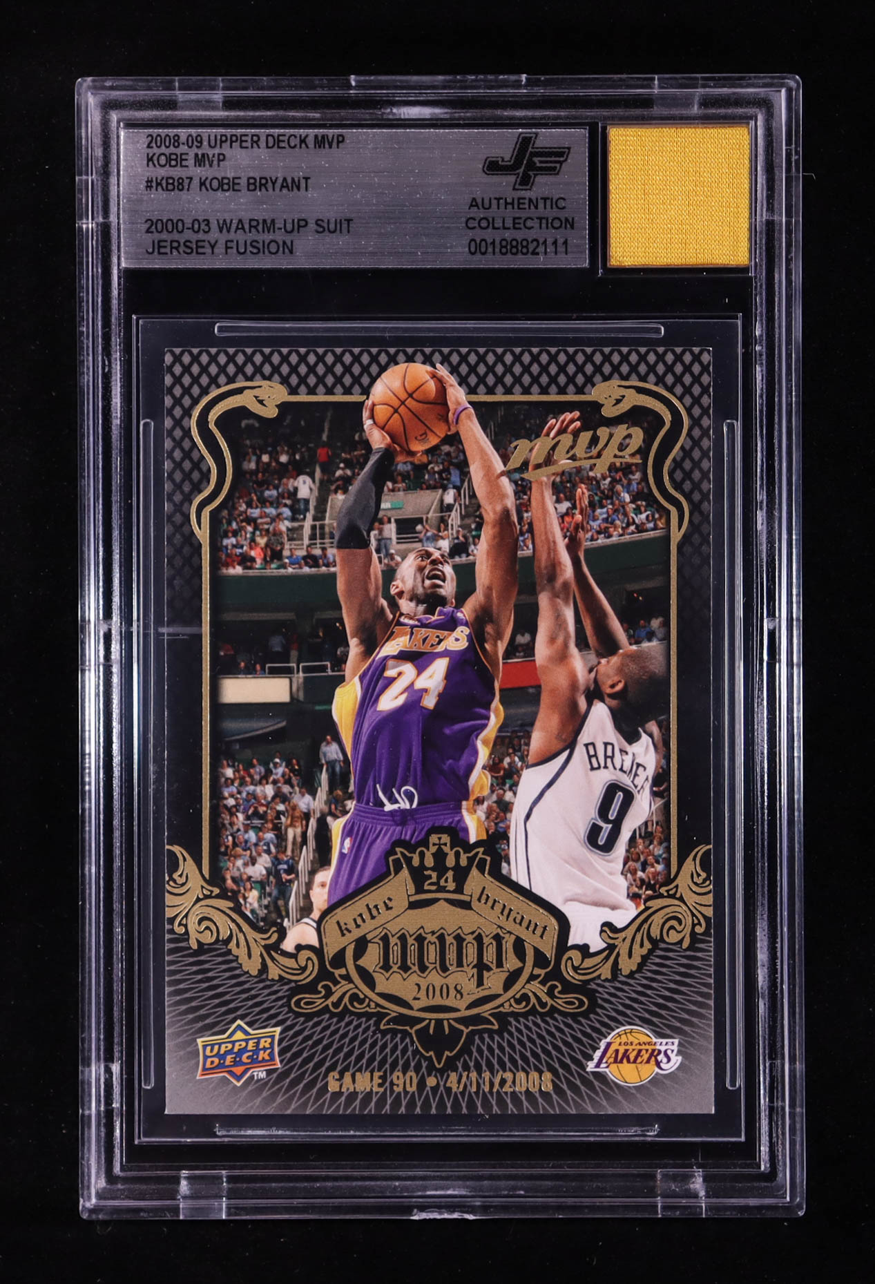 Kobe Bryant 2008-09 Upper Deck MVP Kobe MVP #KB87 With Warm-Up Suit Swatch (BGS)