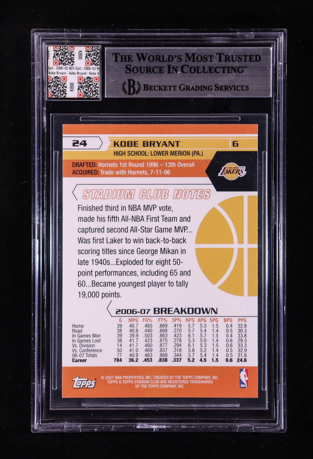 Kobe Bryant 2007-08 Stadium Club #24 With Warm-Up Suit Swatch (BGS)