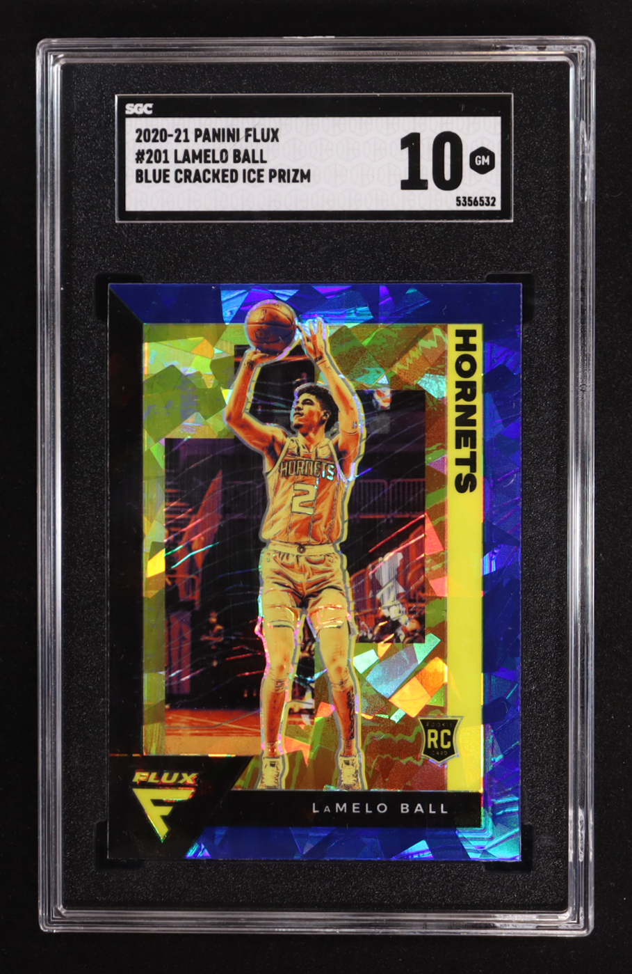 LaMelo Ball 2020-21 Panini Flux Blue Cracked Ice #201 RC (SGC 10)