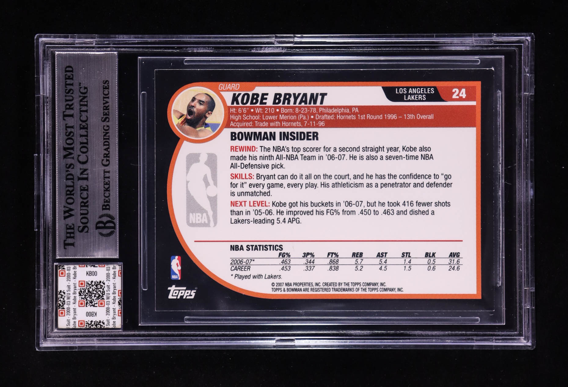 Kobe Bryant 2007-08 Bowman #24 With Warm-Up Suit Swatch (BGS)