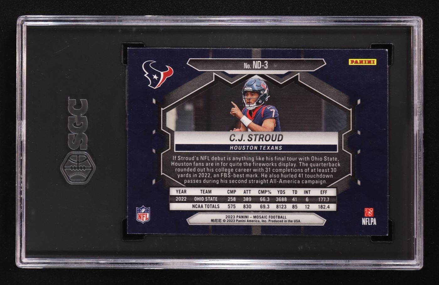 CJ Stroud 2023 Panini Mosaic NFL Debut #3 RC (SGC 9.5)