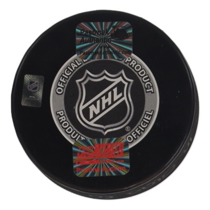 2023 Winter Classic logo hockey puck. Hand-signed by David Pastrnak (Boston Bruins).