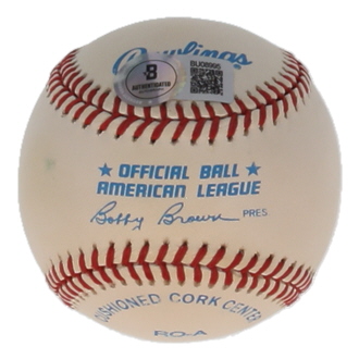 Rawlings Official American League Baseball. Hand-signed and inscribed by Don Sutton (D. 2021, Los Angeles Dodgers, HOF). Please note, the baseball is naturally toned.