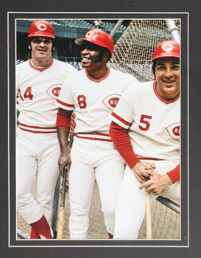 Custom frame display measures approximately 32" x 36" in size and features a jersey that has been hand-signed by Pete Rose (D. 2024). The display also includes (2) 1975 & 1976 World Series pins, (2) 8" x 10" photos as well as (2) cloth team logo patches and a career statistics plaque.