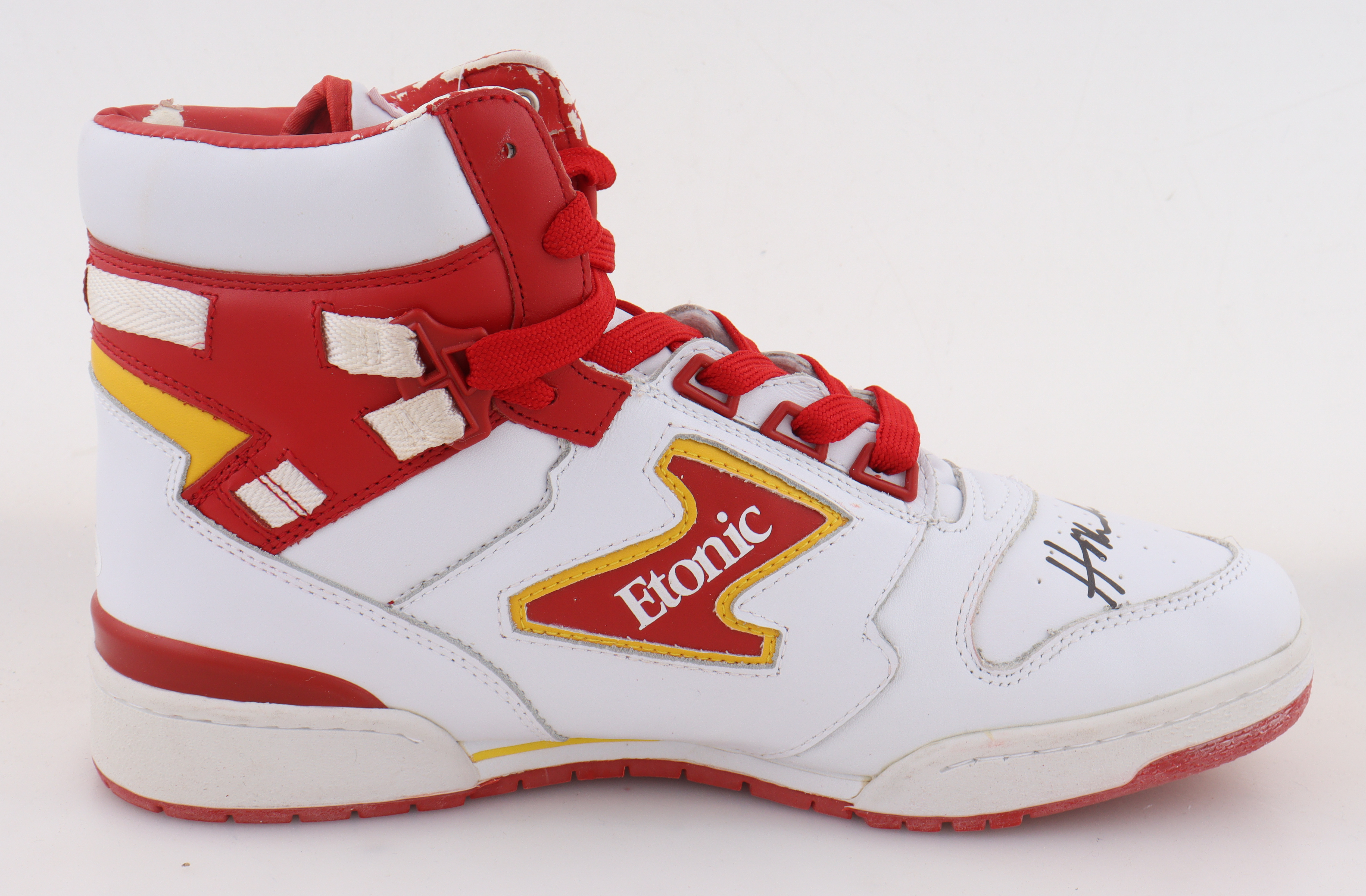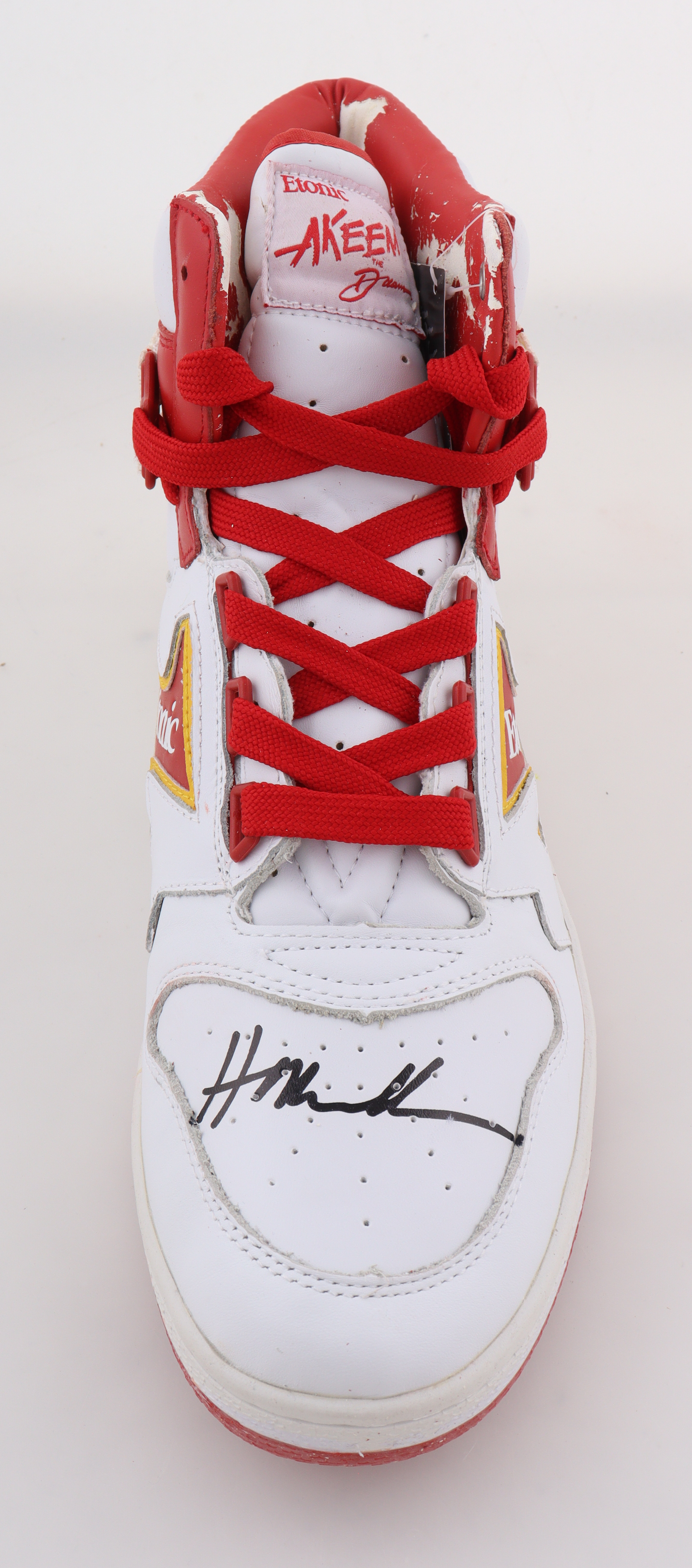 Etonic The Dream 1 basketball shoe, size 11.5. Shoe has been hand-signed by Hakeem Olajuwon (Houston Rockets, HOF). See photos for more details on condition of the shoe.