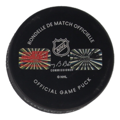 2023 Winter Classic logo hockey puck. Hand-signed by David Pastrnak (Boston Bruins).