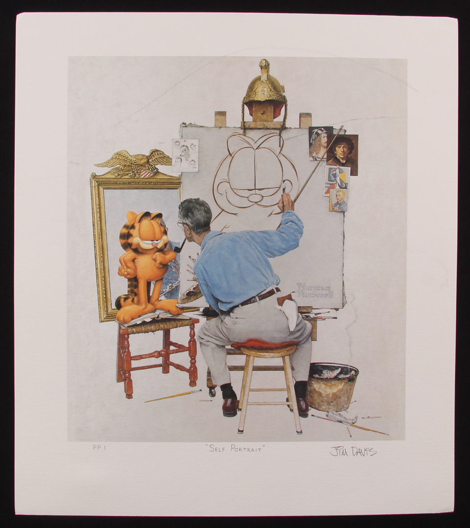 Jim Davis Signed "Self Portrait" 15x16.75 Norman Rockwell & Garfield Lithograph PP #1 (PA LOA)