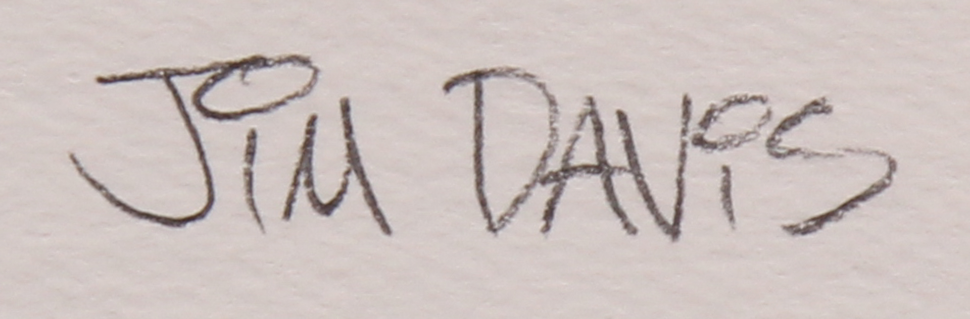 This original animation lithograph features characters originally created by the Emmy Award winning Jim Davis in a unique artistic combination with popular images from the timeless art of Norman Rockwell. Each lithograph is individually numbered, hand-titled, signed by Garfield creator Jim Davis and features an embossed seal. The edition is comprised of 750 pieces in the regular edition and 75 Artist Proofs, for a total edition size of 825 pieces. Please note, there are stray pencil marks on the lithograph.
