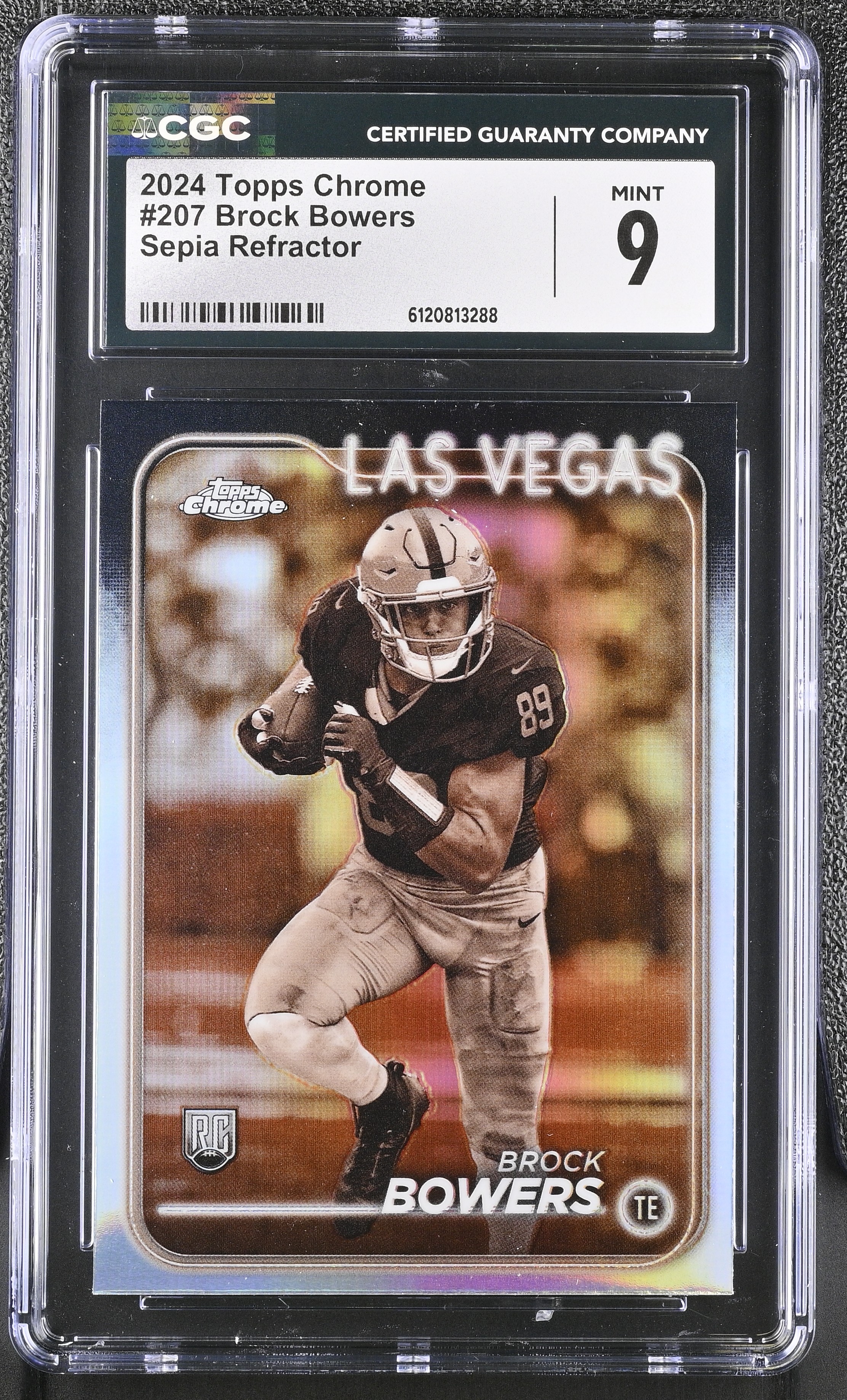 Brock Bowers 2024 Topps Chrome Sepia Refractors #207 RC (CGC 9)