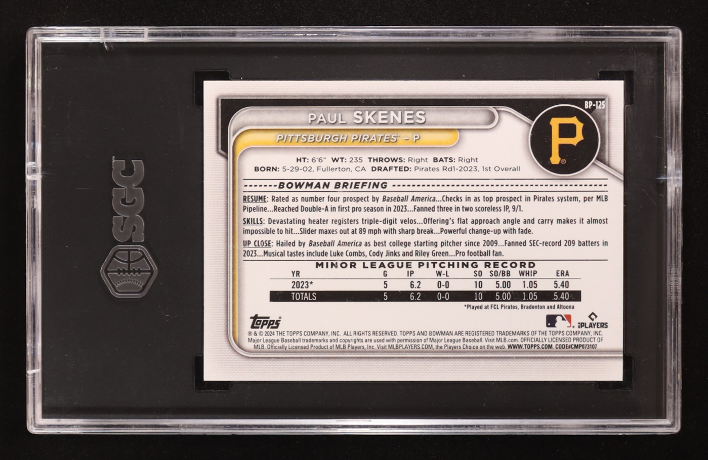 Paul Skenes 2024 Bowman Chrome Prospects #BCP125 (SGC 9.5)