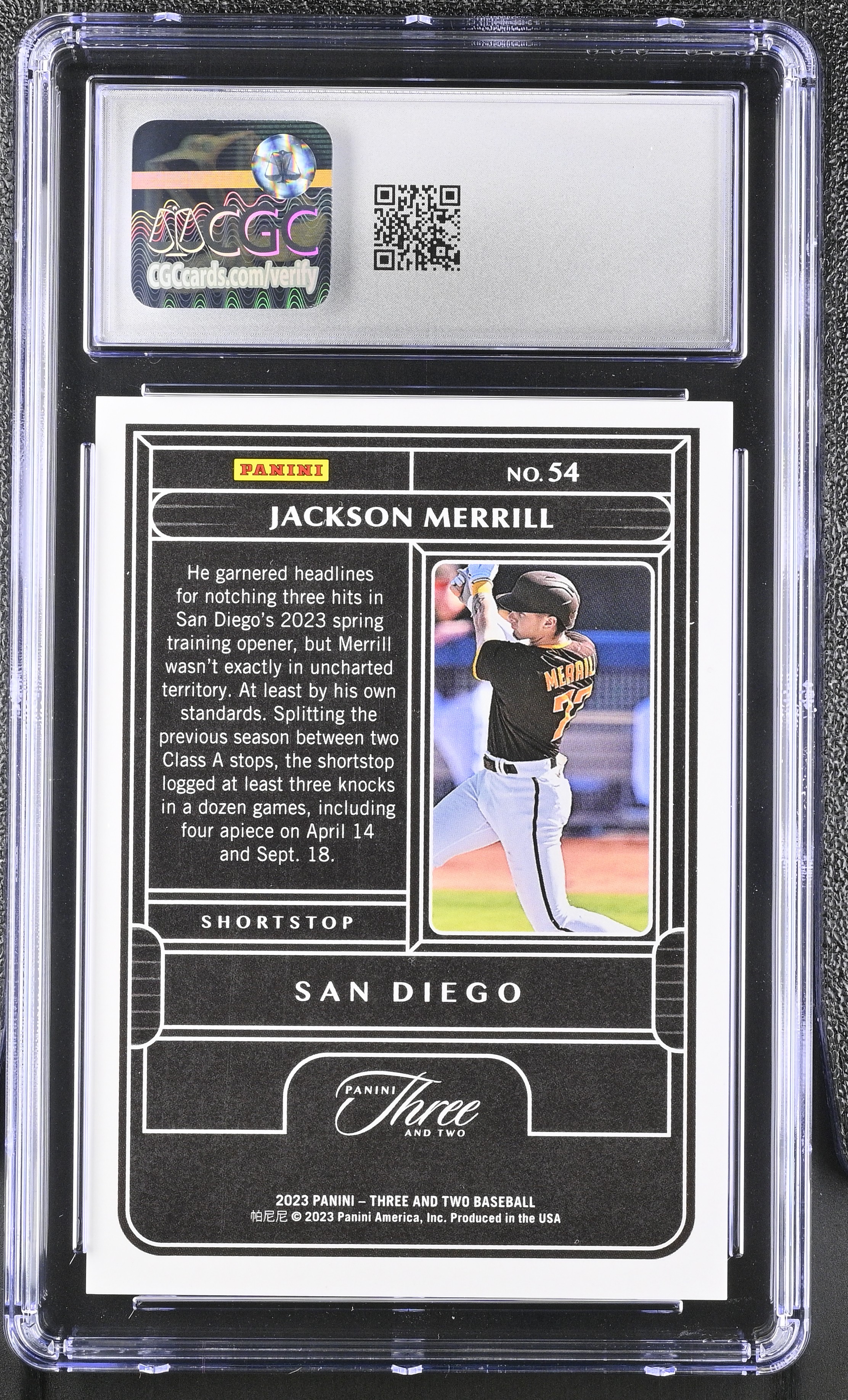 Jackson Merrill 2023 Panini Three And Two #54 RC #26/99 (CGC 9.5)