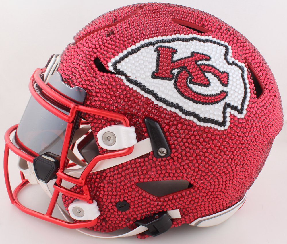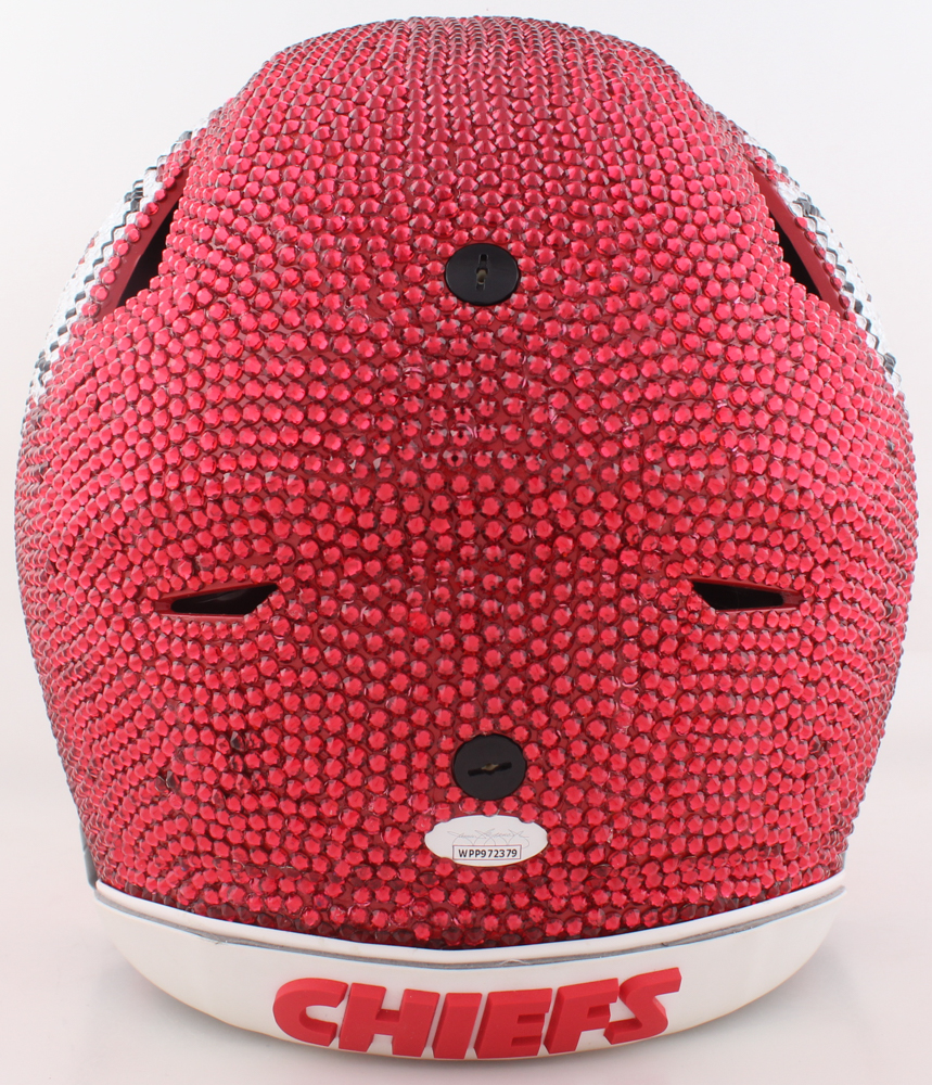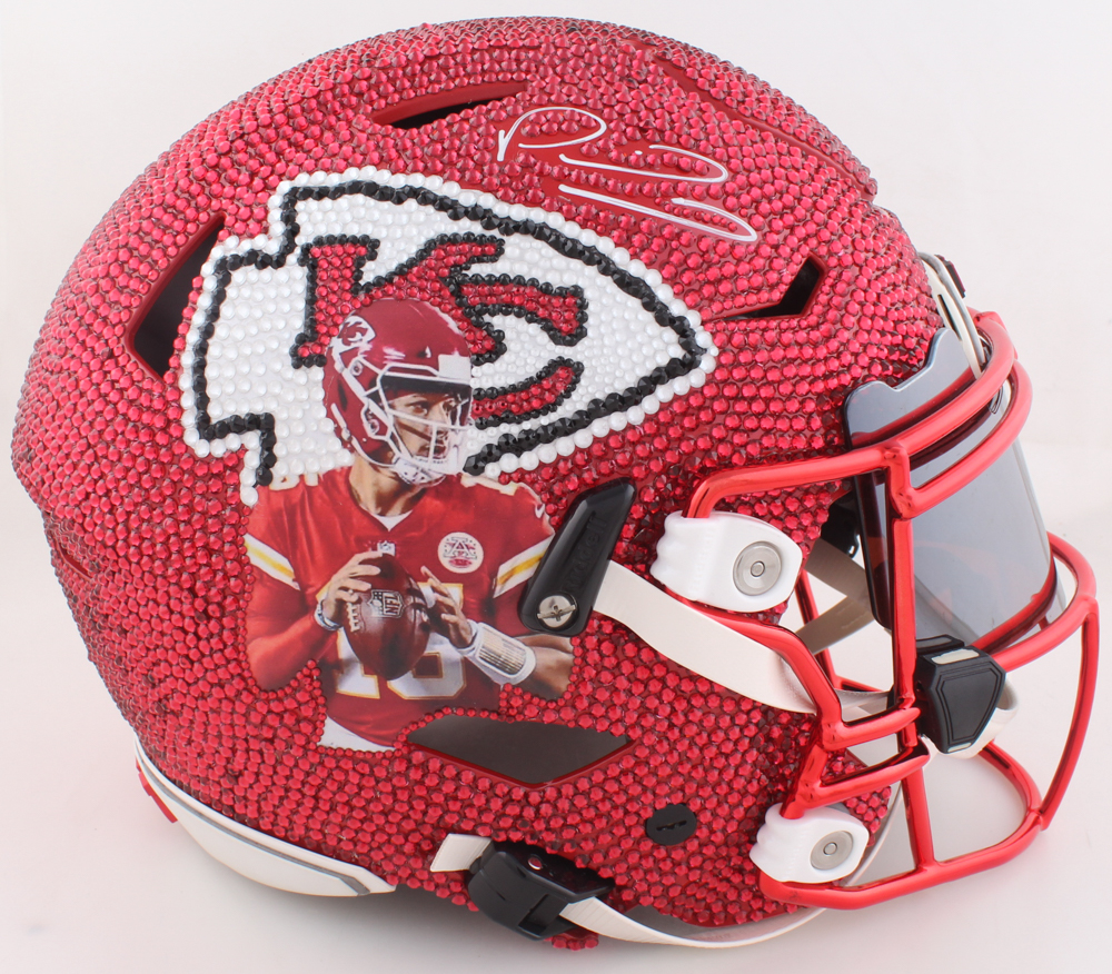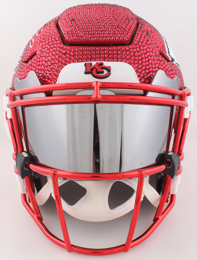 Riddell Kansas City Chiefs Full-Size Authentic On-Field Custom Swarovski Crystal Speedflex Helmet with Visor. Hand-signed by Patrick Mahomes II. Please see photos for details regarding the condition of the item.