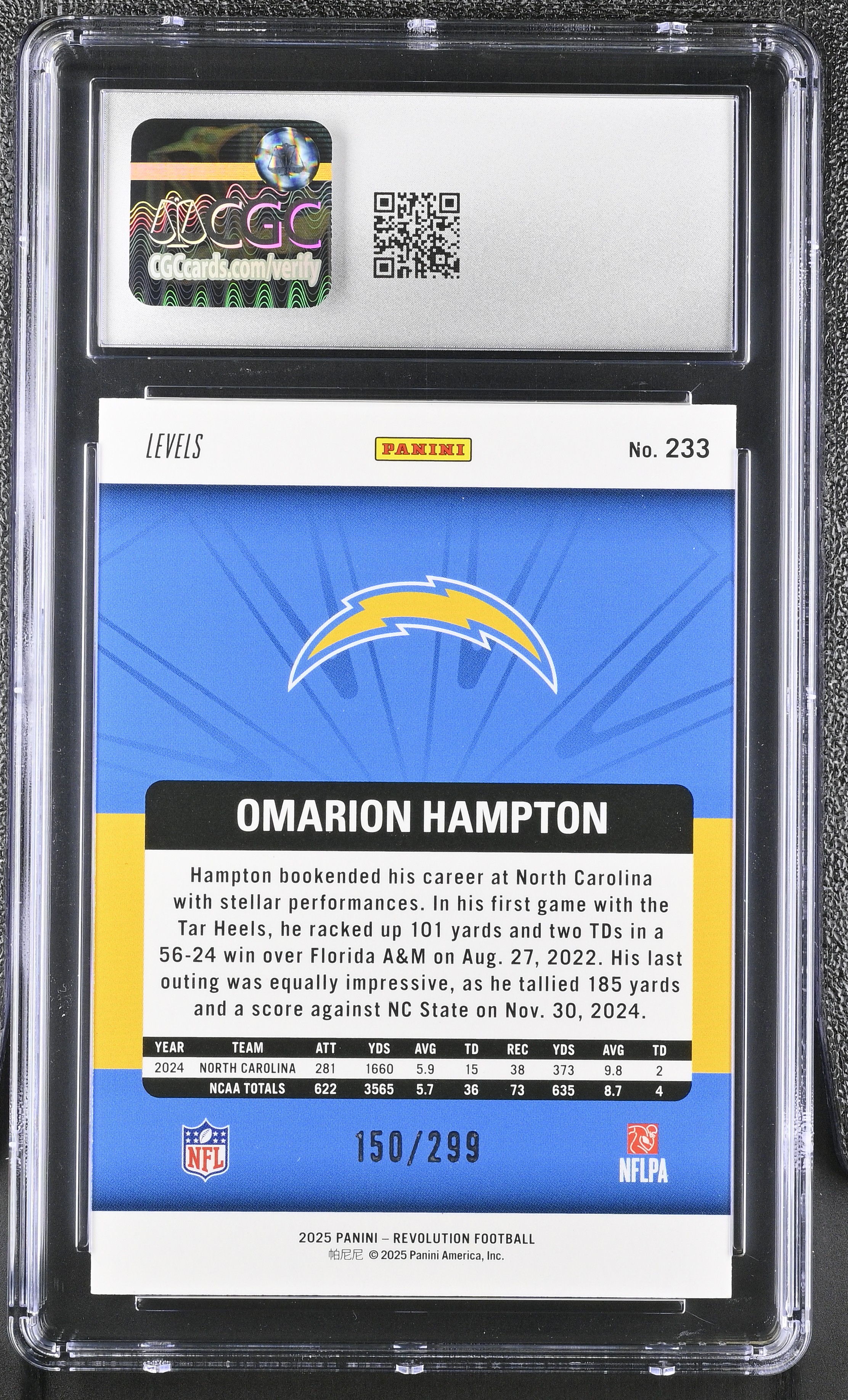 Omarion Hampton 2025 Panini Revolution Orange Levels #233 RC #150/299 (CGC 9)
