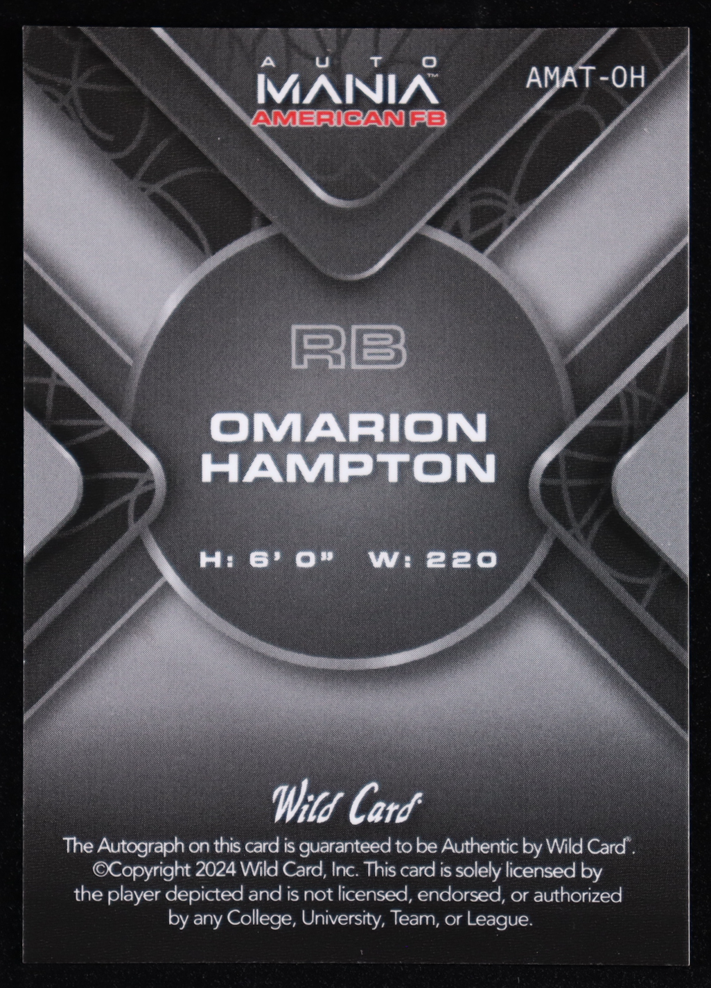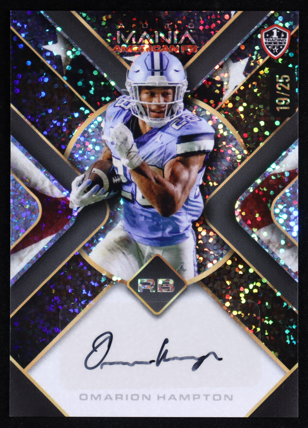 Omarion Hampton 2024 Wild Card Auto Mania American FB Autographs Triangles American Flag Sparkles #AMAT-OH #19/25 RC