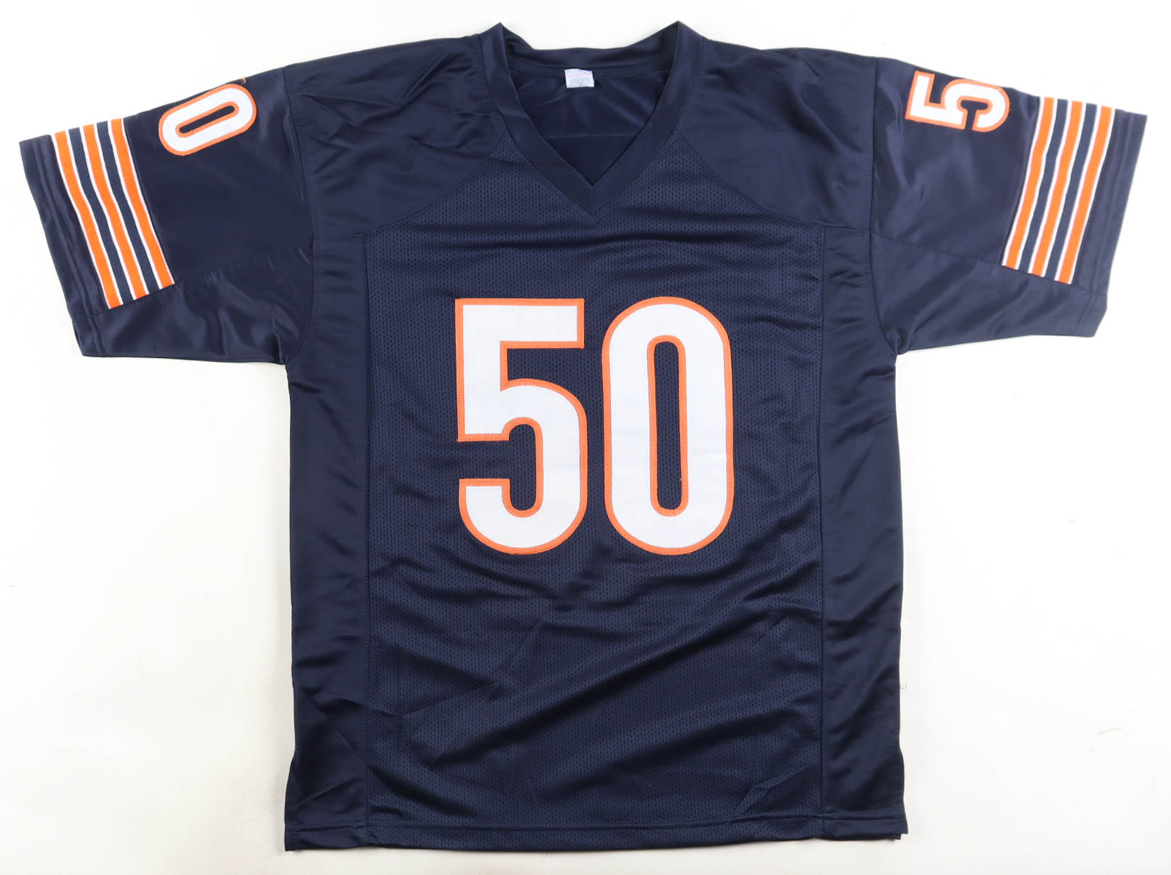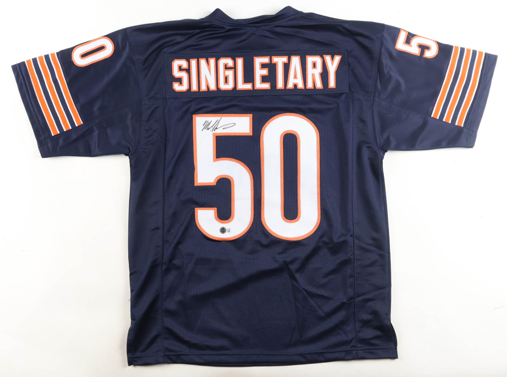 Custom jersey with everything sewn on, size XL. Hand-signed by Mike Singletary (HOF). Please note, glue is visible through the reverse number.