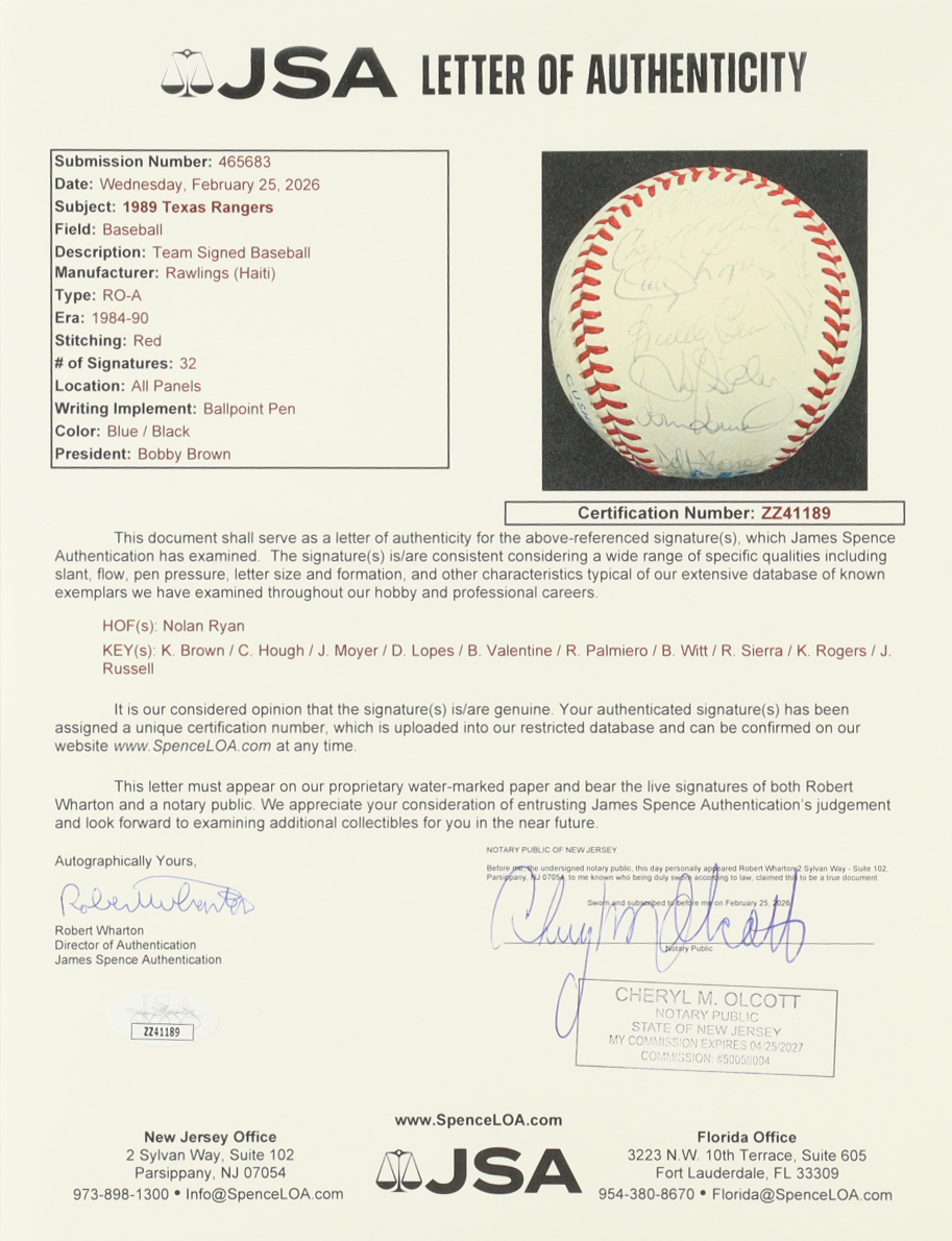 1989 Rangers OAL Baseball Team-Signed by (32) with Nolan Ryan, Kevin Brown, Charlie Hough, Jim Moyer (JSA)