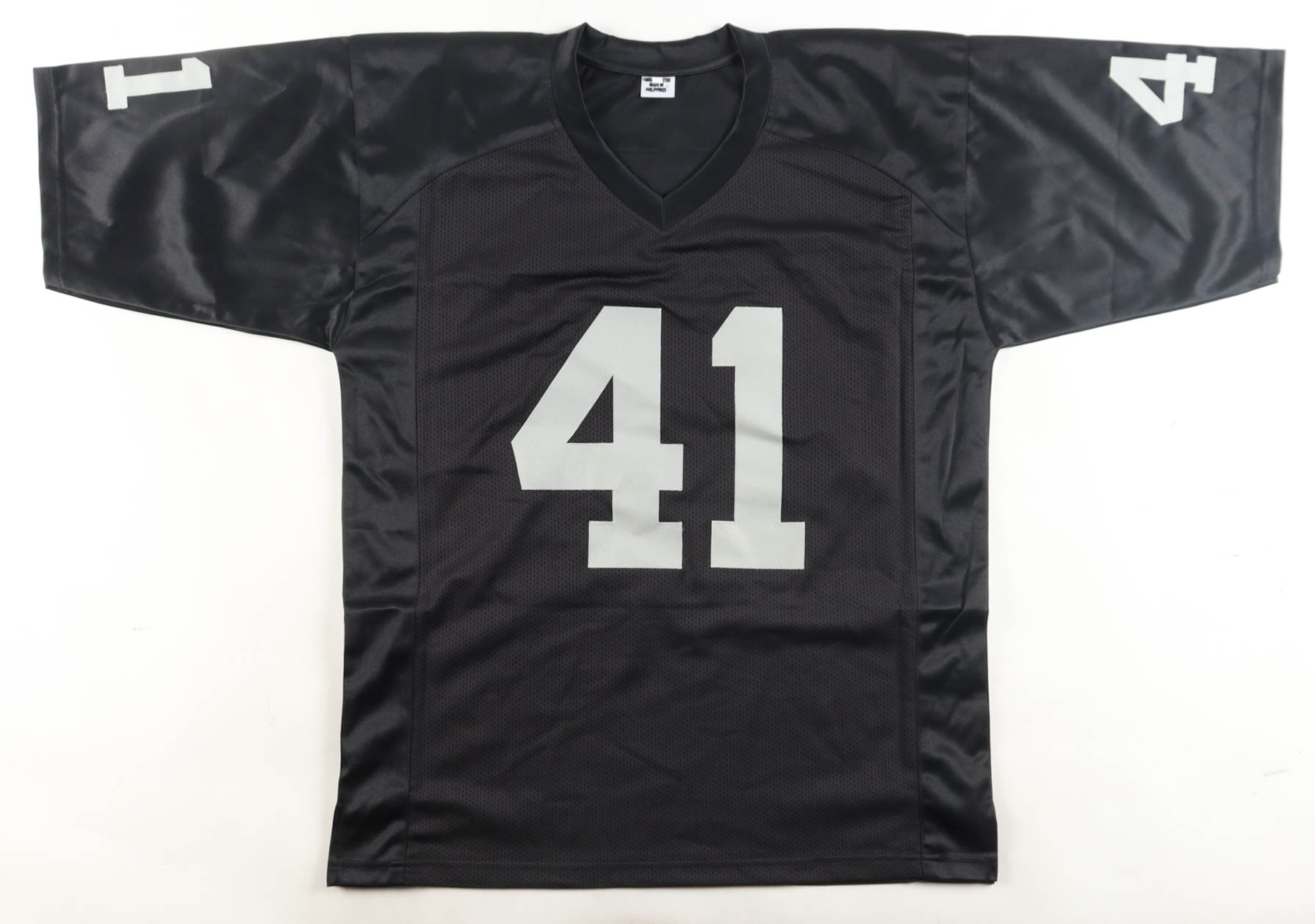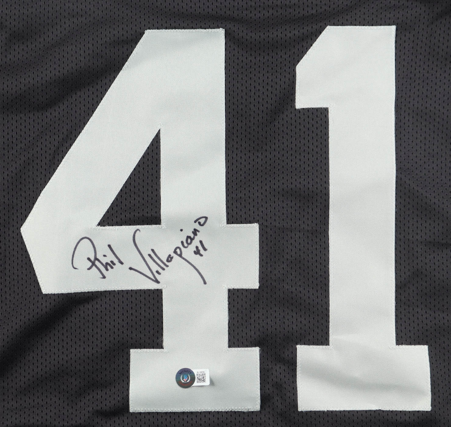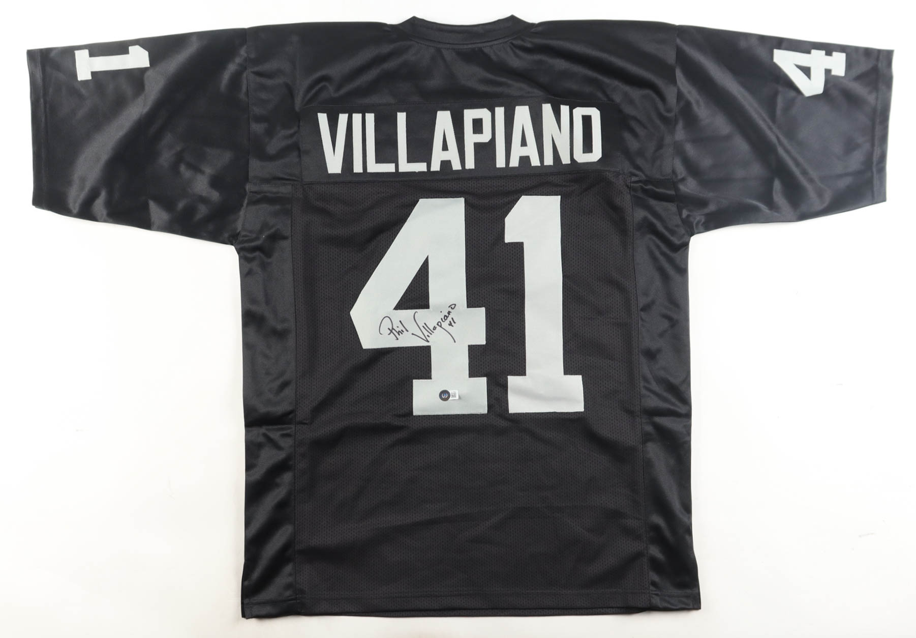 Custom jersey with everything sewn on, size XL. Hand-signed by Phil Villapiano.