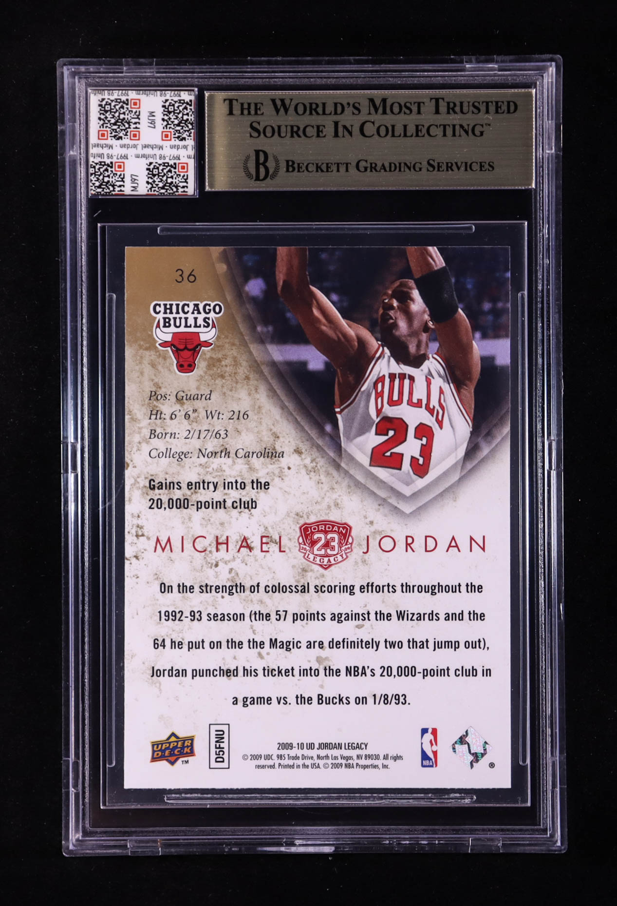 Michael Jordan 2009-10 Upper Deck Michael Jordan Legacy Collection #36 With Game-Used Uniform Swatch (BGS 9.5)