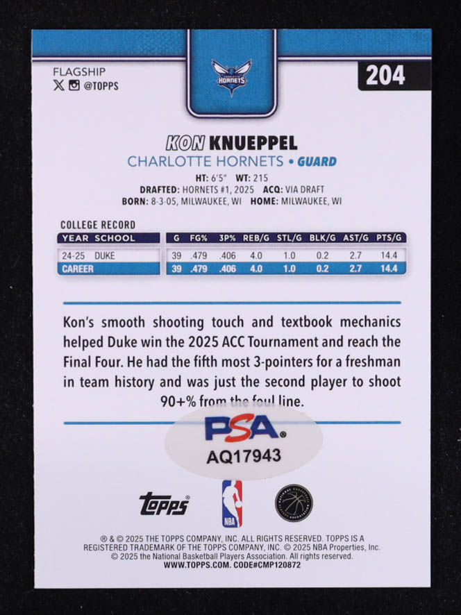 Kon Knueppel Signed 2025-26 Topps #204 RC (PSA)