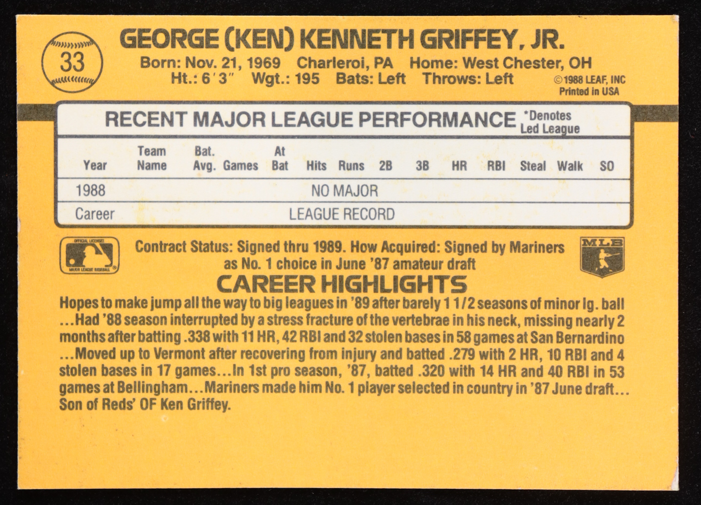 Ken Griffey Jr. 1989 Donruss #33 RR RC